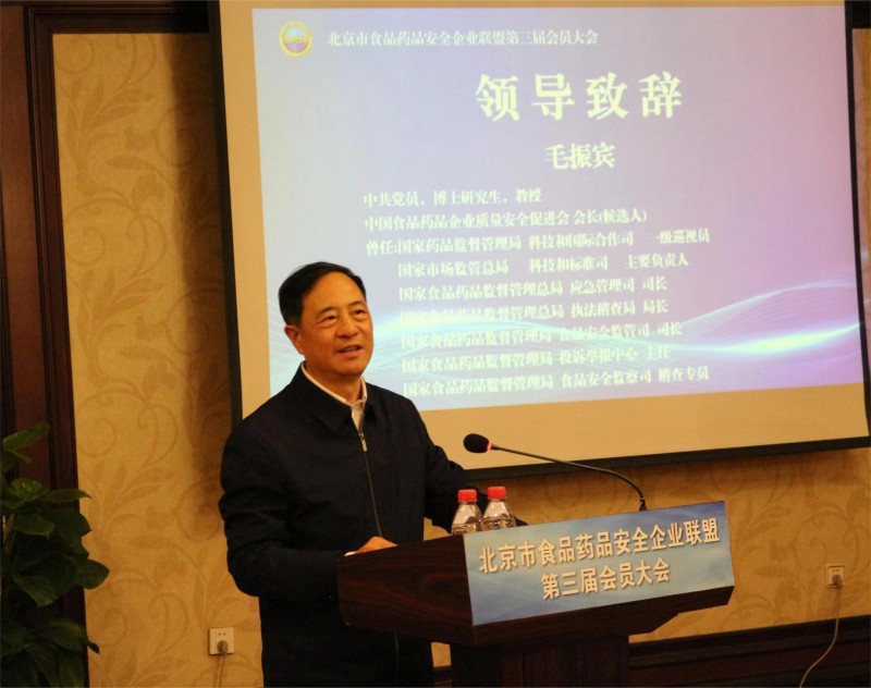 中國食藥促進會會長候選人、國家藥監(jiān)局科技和國際合作司原一級巡視員、博士研究生導師、教授毛振賓先生,北京市市場監(jiān)督管理局食品流通處相關領導,國家科技核心期刊《首都食品與醫(yī)藥》雜志社社長高軍先生等領導及52家會員企業(yè)代表出席了本次大會。