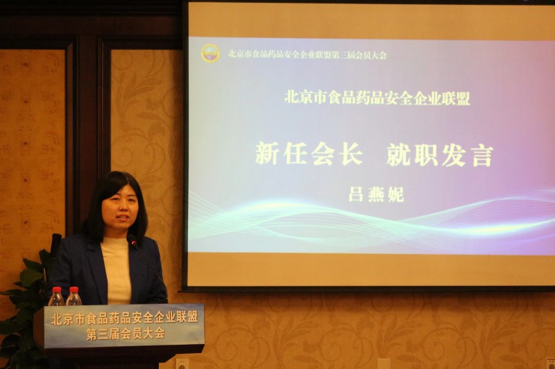 新任會長呂燕妮女士在就職講話中回顧了北京食藥聯(lián)盟前兩屆理事會和領導班子所做的突出貢獻,對一直以來關心、支持北京食藥聯(lián)盟工作的各位領導表示衷心的感謝,并進一步提出北京聯(lián)盟新一屆理事會領導班子,要從確實履行好自身職責、服務好會員單位、引領好行業(yè)發(fā)展、傳承好創(chuàng)新優(yōu)勢等方面提出要求,強調唯有實干,才能有所作為,才能不負重托,才能為打造首都北京食藥安全治理能力現(xiàn)代化作出新貢獻!