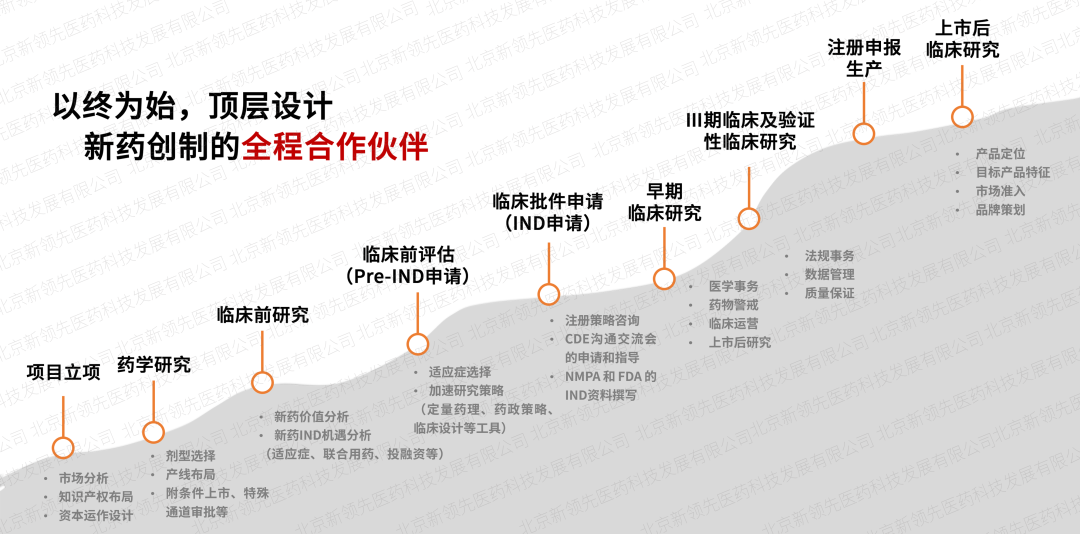 依托于新領先CXO服務體系,創(chuàng)建了“交互式”臨床服務模式,在項目立項階段全面介入,做新藥創(chuàng)制的全程合作伙伴,整合醫(yī)學、藥政、藥學研發(fā)等技術專家進行頂層設計,最大限度降低項目研發(fā)風險。同時,成立專項政府引導基金,為創(chuàng)新項目提供不同階段的投融資,最大程度加速藥品上市進程。此外,強大的定量藥理學及體內外橋接團隊針對特定疾病和特定人群進行數(shù)字模型研究,制定科學高質的臨床研究方案,提高新藥臨床開發(fā)效率。
