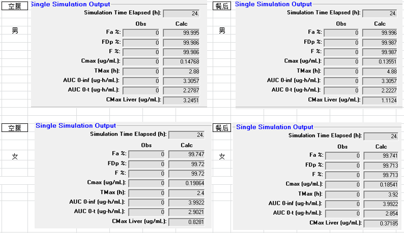 研究結(jié)果表明,PK參數(shù)受性別影響,處方變更后BCSI類化合物食物對(duì)PK參數(shù)無顯著影響。建模模擬結(jié)果與文獻(xiàn)報(bào)道結(jié)果相似,運(yùn)用模型可準(zhǔn)確預(yù)測(cè)處方變更后BCS I類化合物的空腹及餐后PK參數(shù),預(yù)測(cè)處方變更后食物效應(yīng)情況。