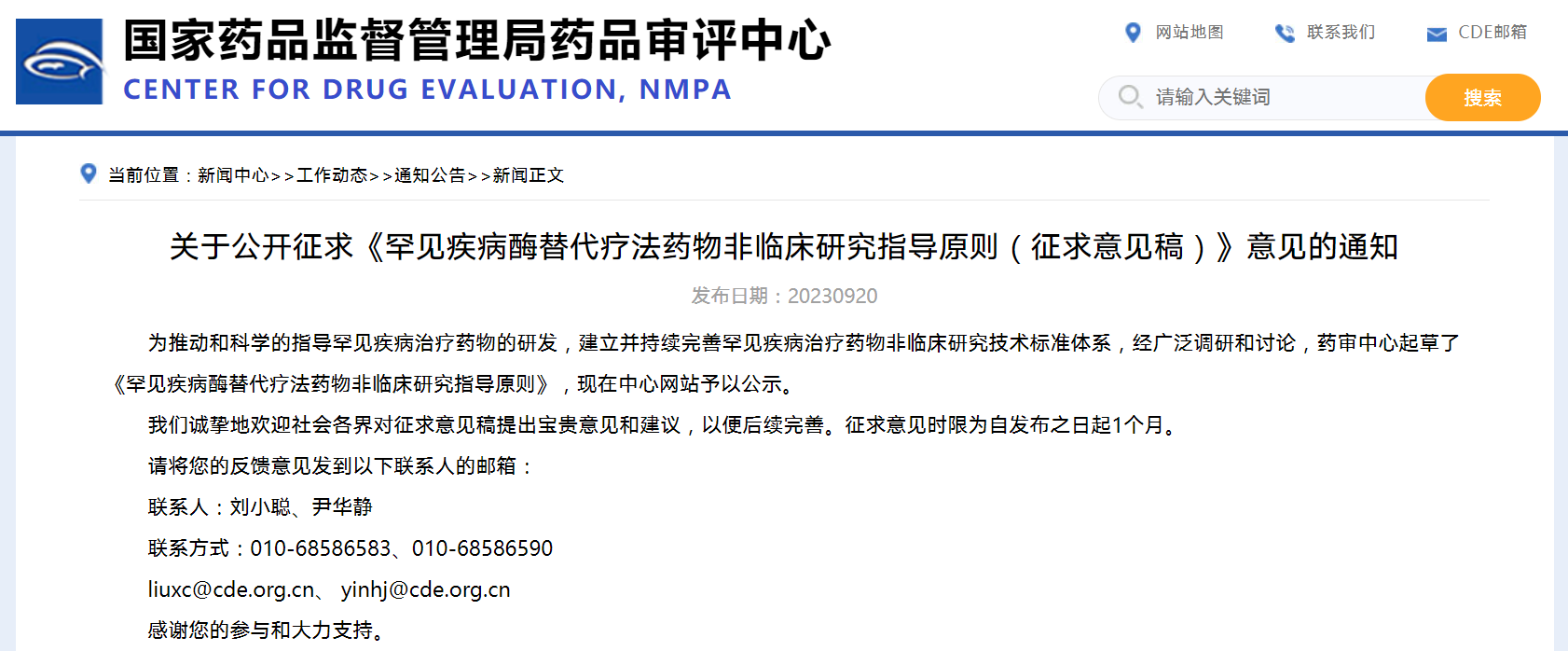 關(guān)于公開征求《罕見疾病酶替代療法藥物非臨床研究指導(dǎo)原則》(征求意見稿)意見的通知