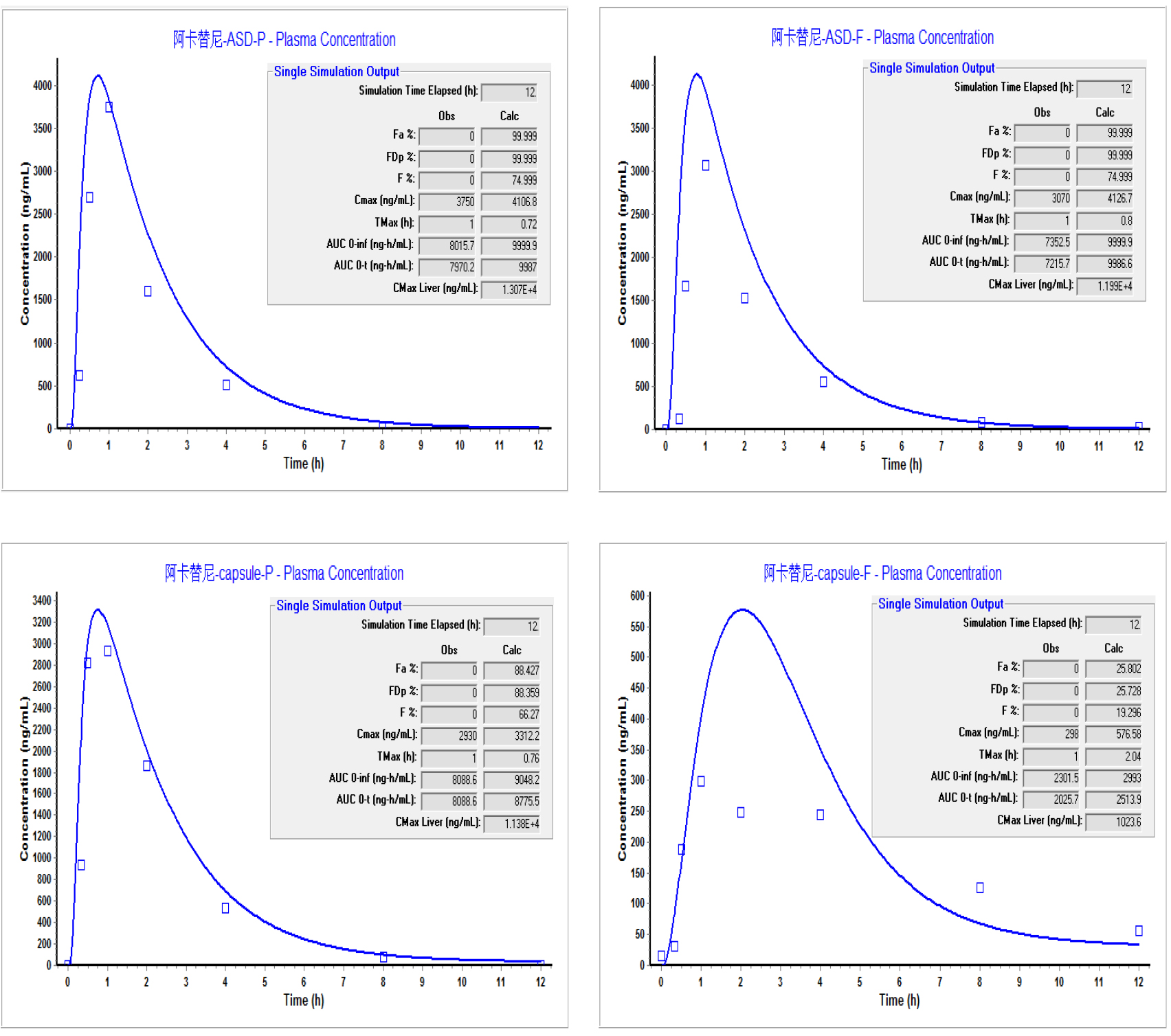 小編采用文章中模型建立參數(shù)值及文獻(xiàn)調(diào)研值,運用Gastroplus軟件進(jìn)行重現(xiàn),建立的模型預(yù)測結(jié)果基本與文章模擬結(jié)果一致,模擬結(jié)果詳細(xì)如下: