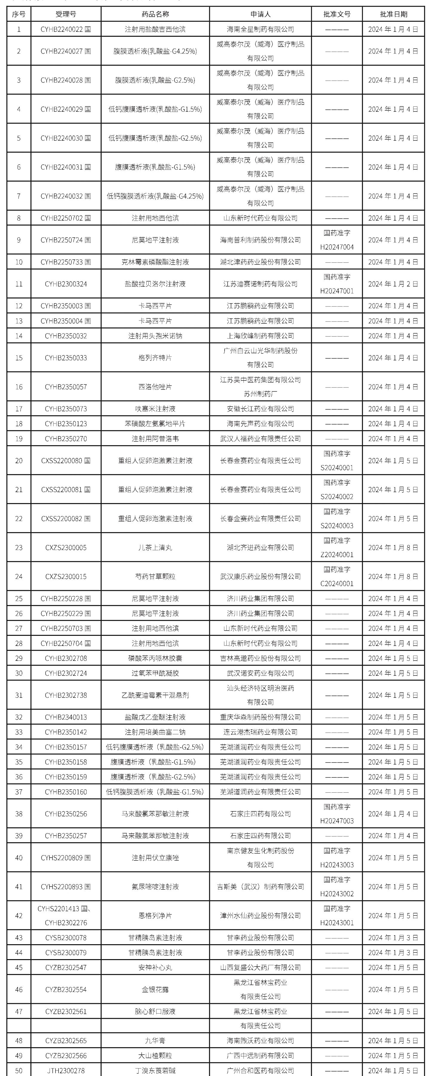 截至2024年1月12日 15:00本周發(fā)布122個待領(lǐng)取藥品批準(zhǔn)證明文件,其中注射液48個,一致性評價品種36個。