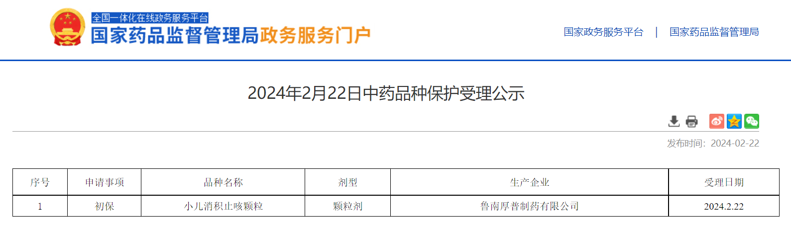 2024年2月22日中藥品種保護(hù)受理公示