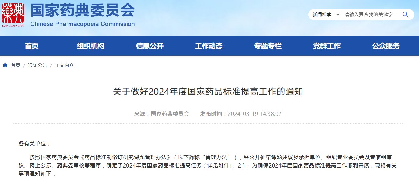 關(guān)于做好2024年度國家藥品標(biāo)準(zhǔn)提高工作的通知
