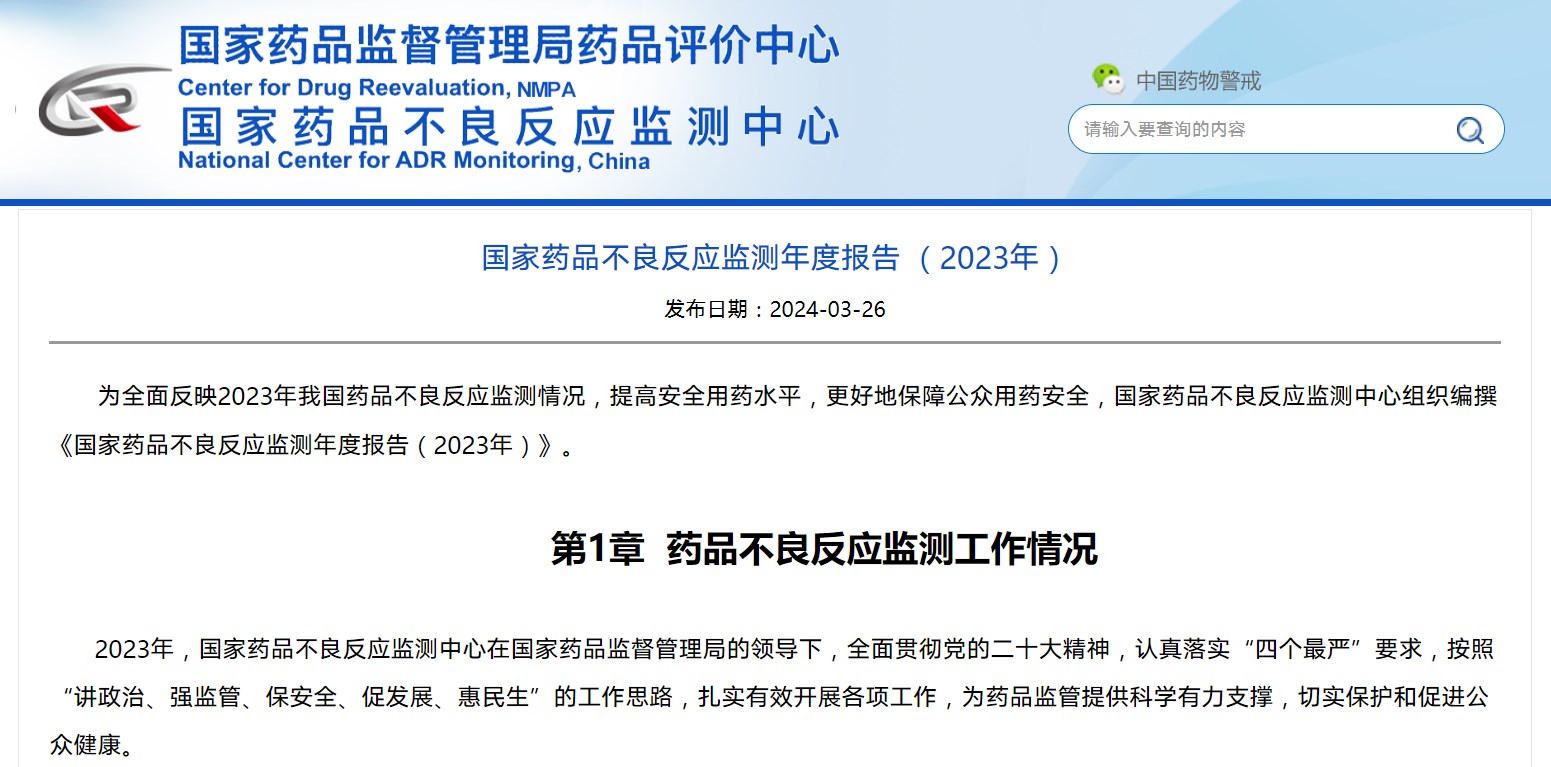 國家藥品不良反應(yīng)檢測年度報告(2023年)