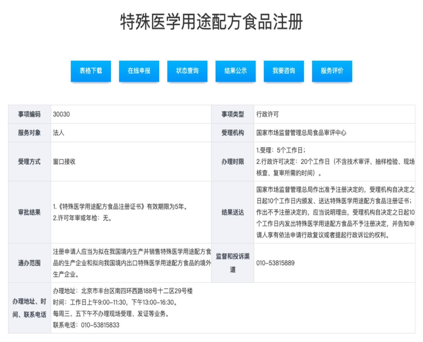 國(guó)家市場(chǎng)監(jiān)督管理總局SAMR食品審評(píng)機(jī)構(gòu)承擔(dān)特殊醫(yī)學(xué)用途配方食品注冊(cè)申請(qǐng)的受理、審評(píng)等工作??傻卿浘W(wǎng)站進(jìn)行線上注冊(cè)申報(bào)。網(wǎng)址:https://tyspzc.gsxt.gov.cn/stzcww/login/loginAction!login.dhtml