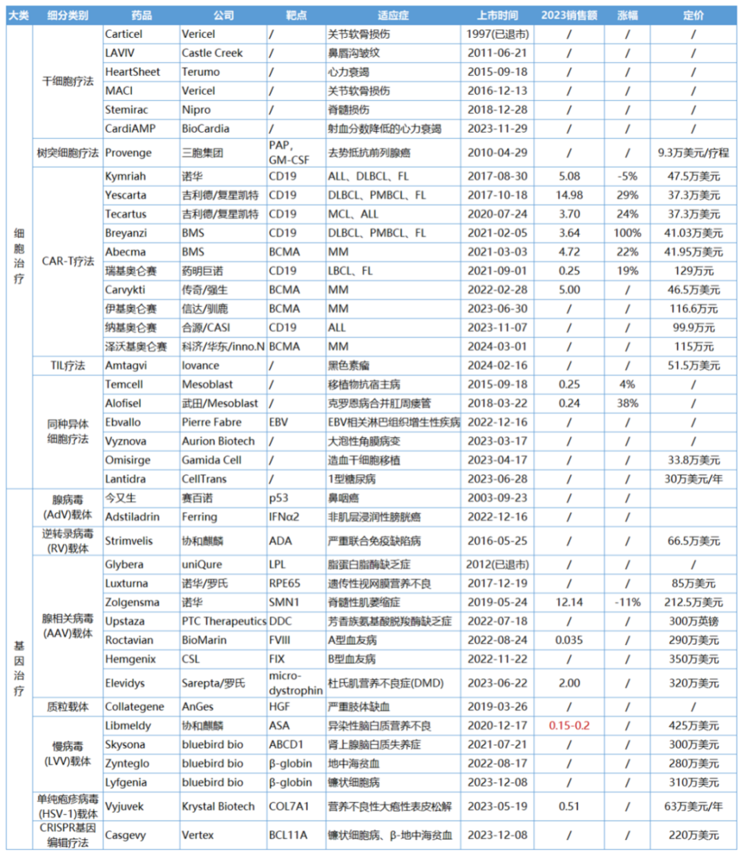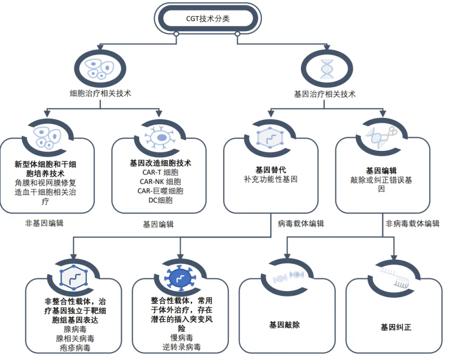 過(guò)去30多年來(lái), CGT領(lǐng)域抵住一個(gè)又一個(gè)時(shí)間節(jié)點(diǎn)的考驗(yàn)逐步蛻變。從1990年代首項(xiàng)相關(guān)臨床試驗(yàn)啟動(dòng),到2000年代因出現(xiàn)嚴(yán)重不良反應(yīng),整個(gè)領(lǐng)域遇冷,之后在人才、資本和政策的多重利好下,CGT重?zé)ㄐ律?。?shù)十款包括CAR-T療法、干細(xì)胞療法、溶瘤病毒療法和基因療法等在內(nèi)的創(chuàng)新產(chǎn)品涌現(xiàn),帶動(dòng)了產(chǎn)業(yè)鏈上下游發(fā)展。