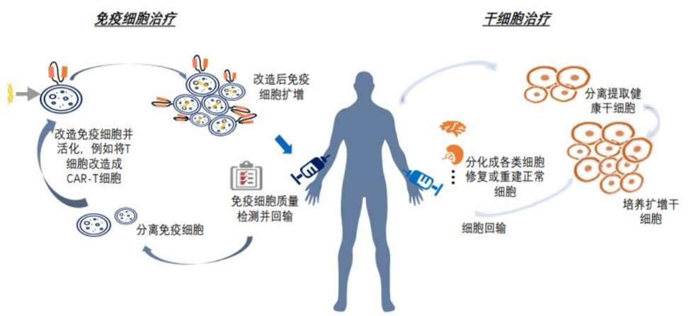細(xì)胞治療是指應(yīng)用人自體或異體來(lái)源的細(xì)胞經(jīng)體外操作后輸入(或植入)人體,用于疾病治療的過(guò)程。體外操作包括但不限于分離、純化、培養(yǎng)、擴(kuò)增、活化、細(xì)胞(系)的建立、凍存復(fù)蘇等。細(xì)胞治療主要可分為免疫細(xì)胞治療、干細(xì)胞治療和其它體細(xì)胞治療。