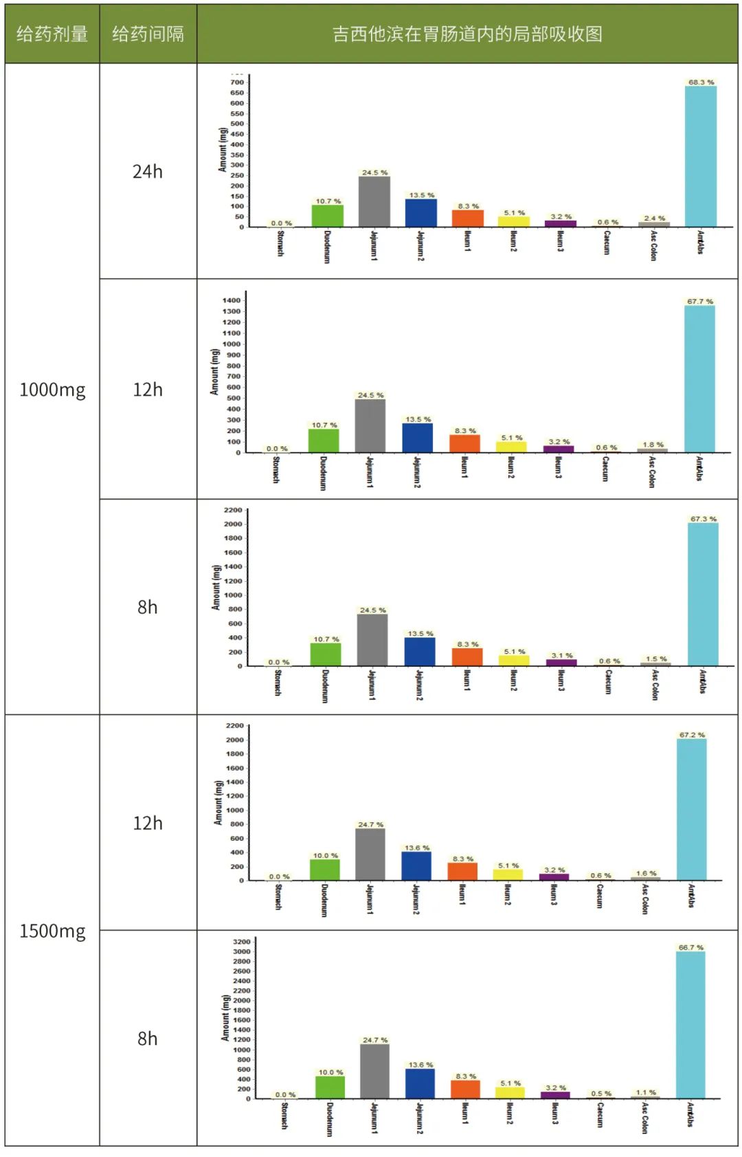 表4 不同給藥方案下口服吉西他濱在胃腸道內(nèi)的局部吸收?qǐng)D