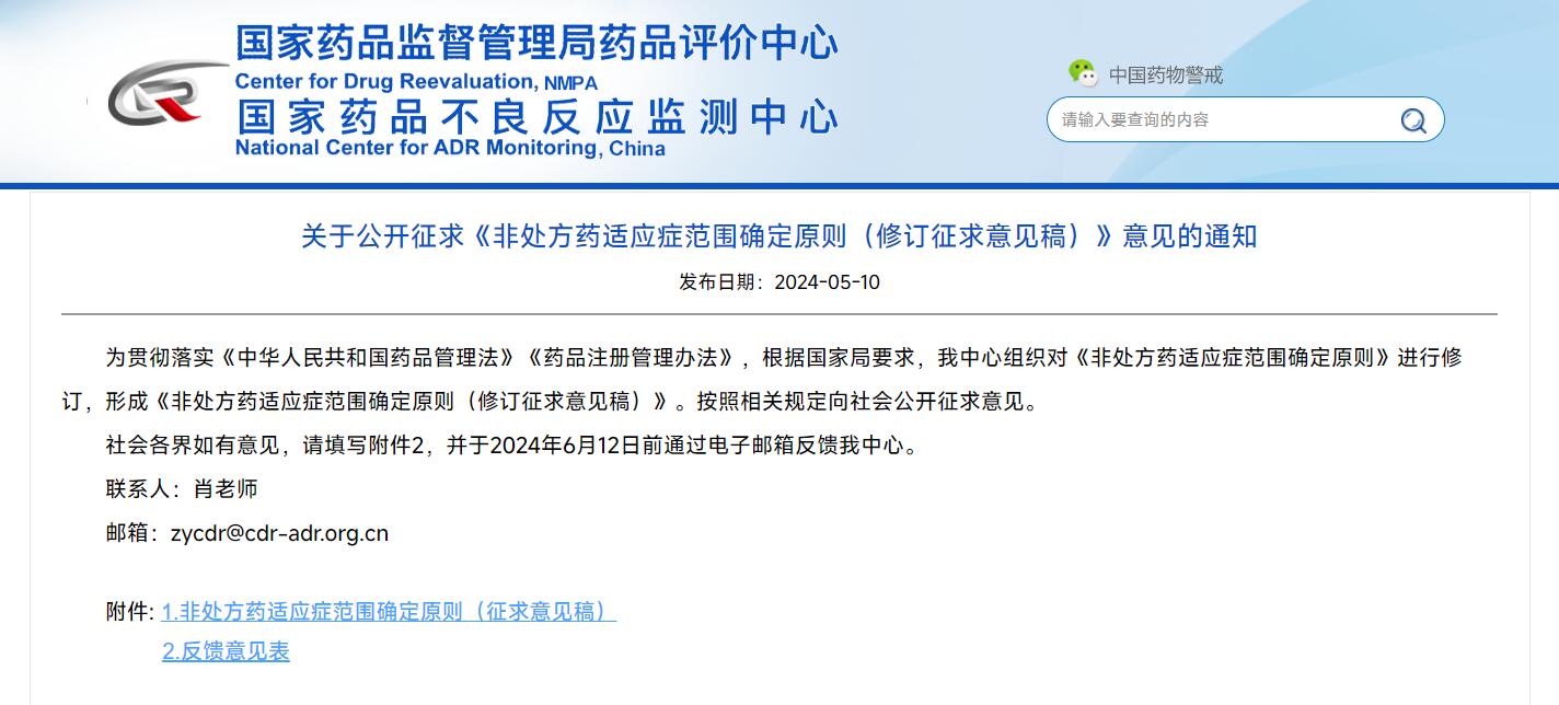 關(guān)于公開(kāi)征求《非處方藥適應(yīng)癥范圍確定原則(修訂征求意見(jiàn)稿)》意見(jiàn)的通知