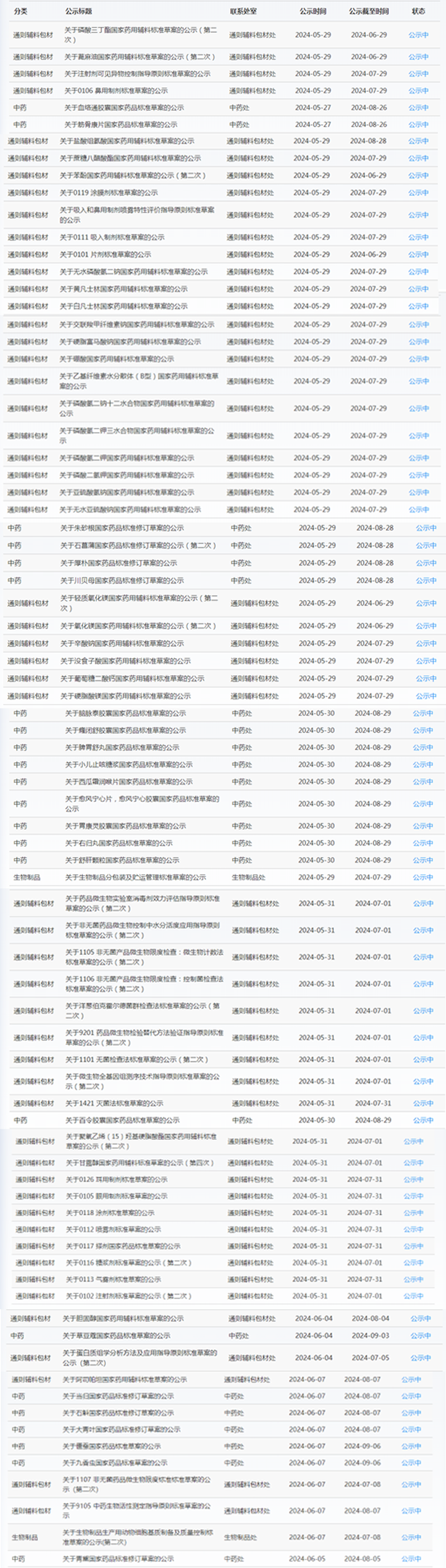 5月27日-6月7日,藥典委發(fā)布的標準草案公示如下: