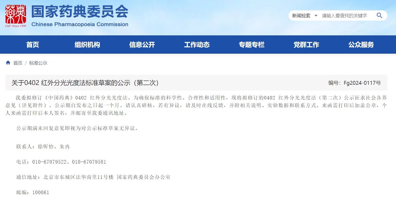 關(guān)于0402 紅外分光光度法標(biāo)準(zhǔn)草案的公示(第二次)