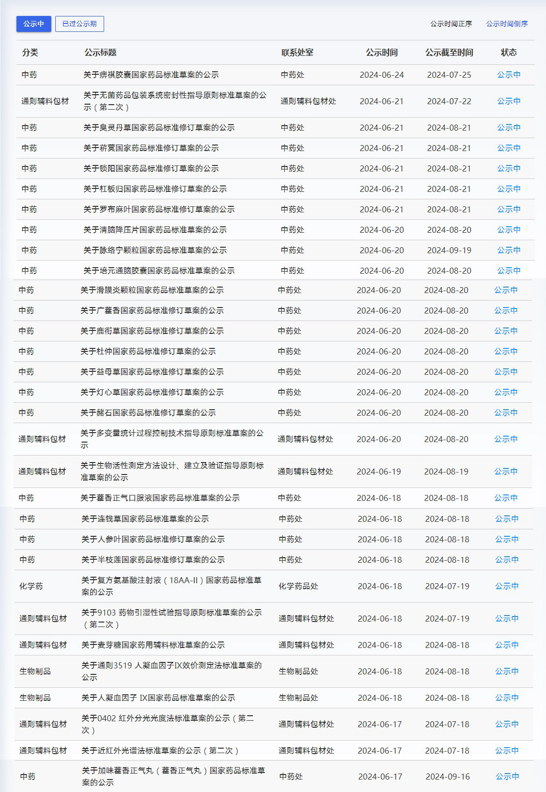 本周,藥典委發(fā)布的標(biāo)準(zhǔn)草案公示如下: