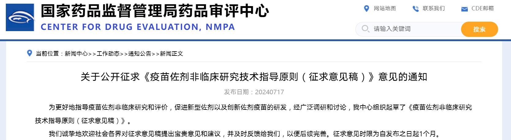 關(guān)于公開征求《疫苗佐劑非臨床研究技術(shù)指導(dǎo)原則(征求意見(jiàn)稿)》意見(jiàn)的通知