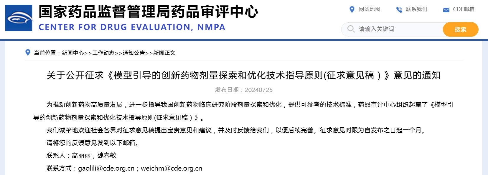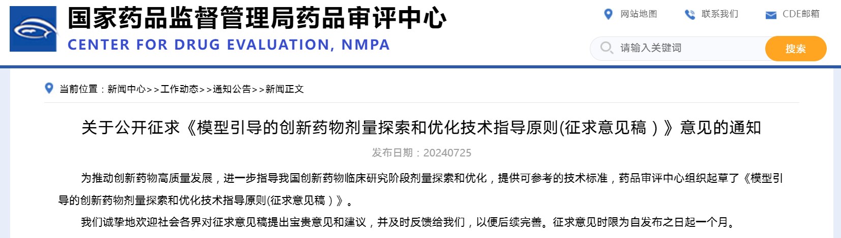 關(guān)于公開征求《模型引導的創(chuàng)新藥物劑量探索和優(yōu)化技術(shù)指導原則(征求意見稿)》意見的通知