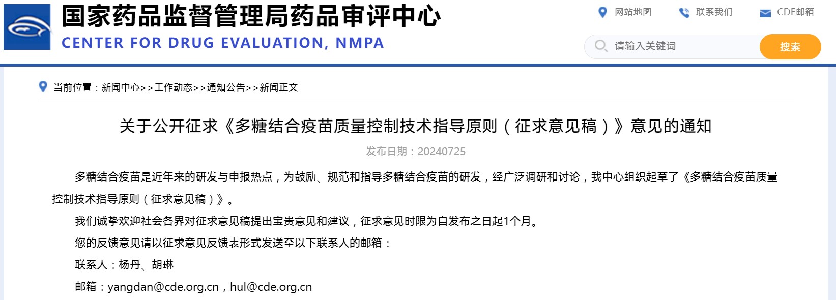 關(guān)于公開征求《多糖結(jié)合疫苗質(zhì)量控制技術(shù)指導原則(征求意見稿)》意見的通知