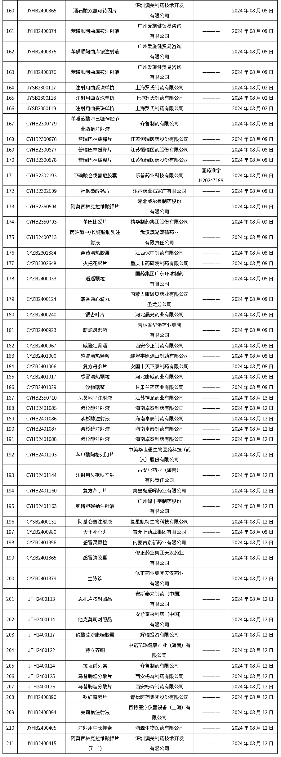 本周(截至8月16日16:00)共發(fā)布藥品批準(zhǔn)證明文件送達(dá)信息211 個(gè),其中一致性評價(jià)7個(gè),注射劑61個(gè)。