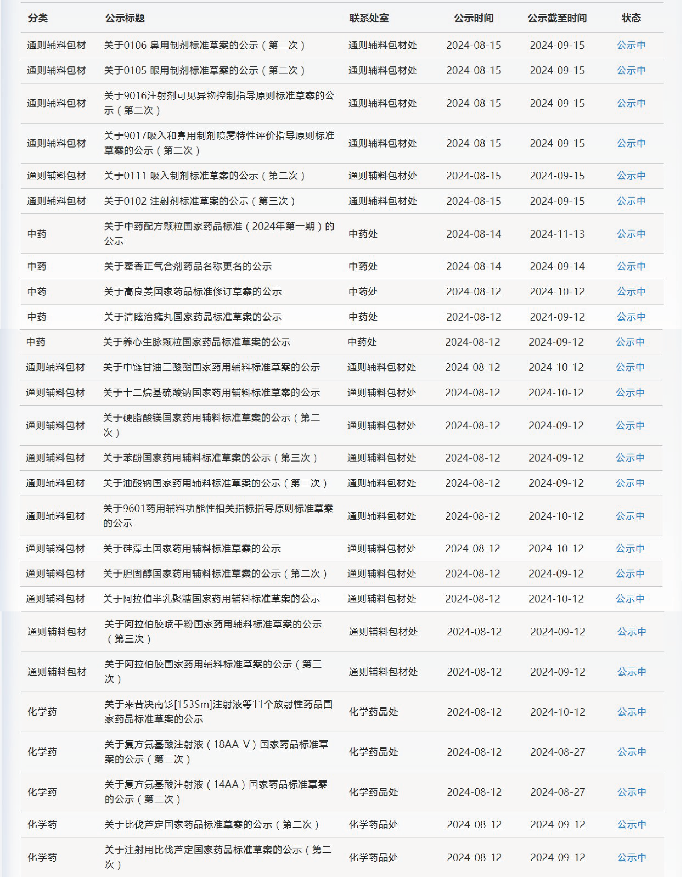 本周,藥典委發(fā)布的標(biāo)準(zhǔn)草案公示如下: