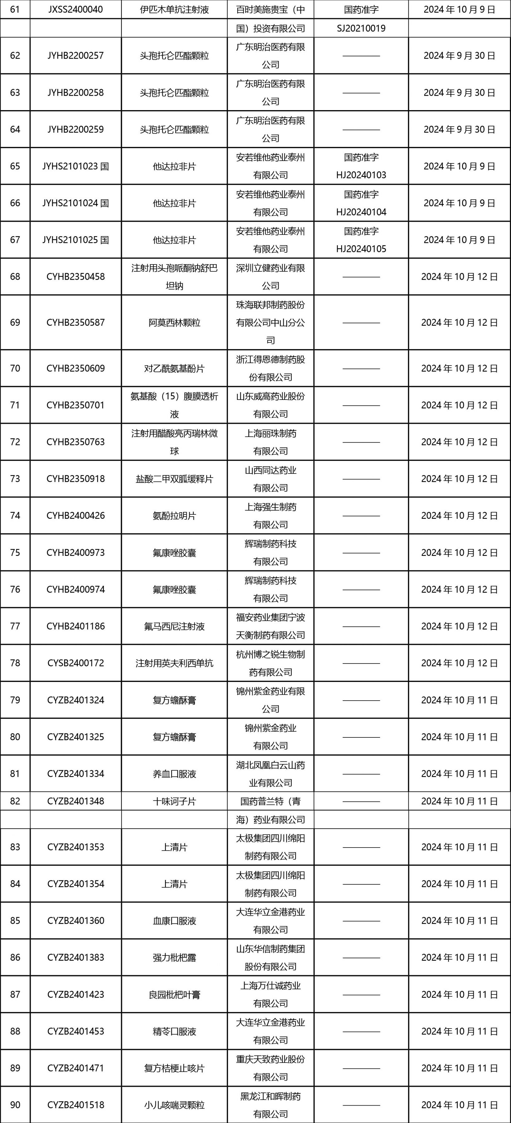 截止2024年10月18日 15:00本周發(fā)布161個待領(lǐng)取藥品批準證明文件,其中注射液84個,一致性評價品種30個。