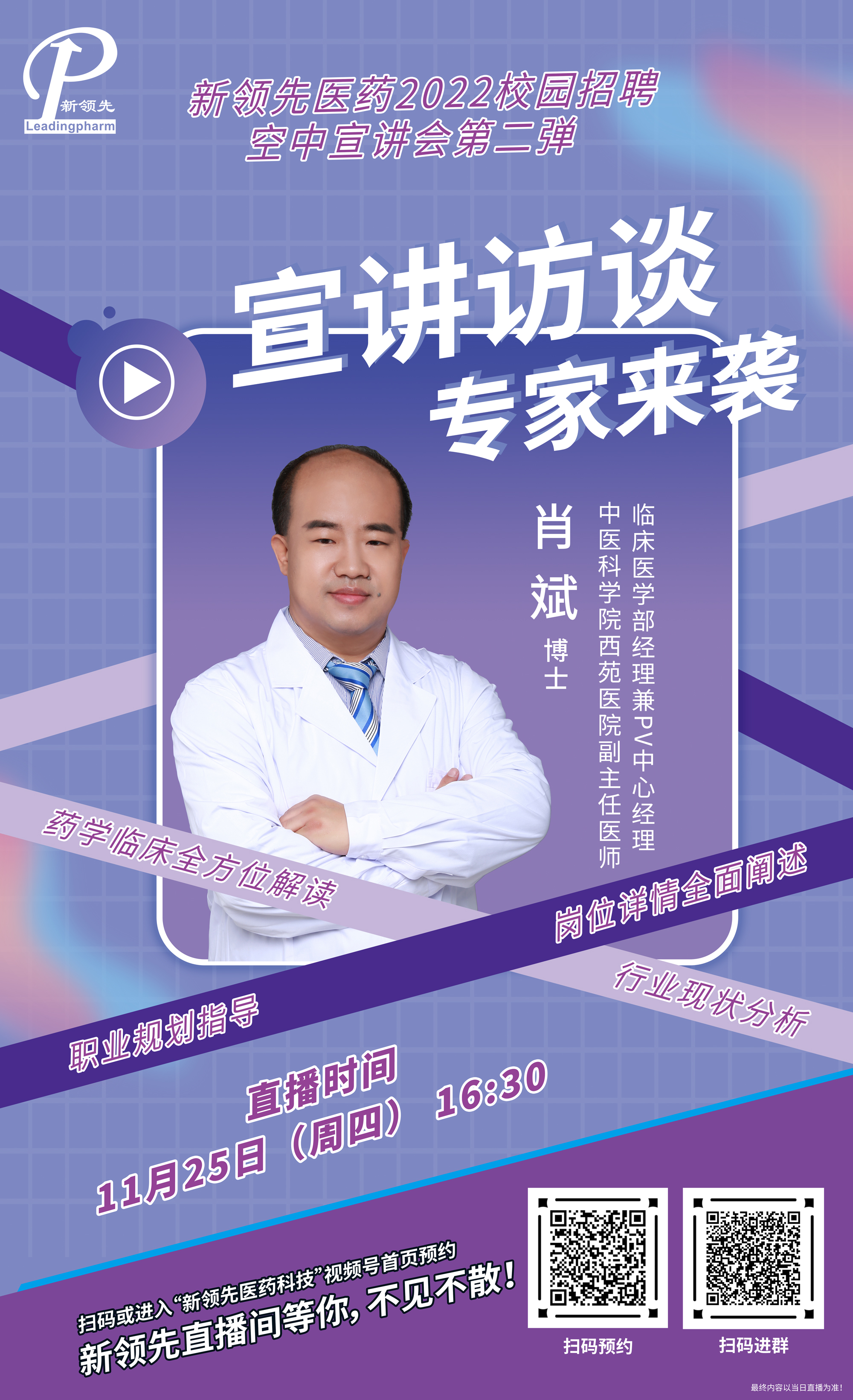 112021-11直播預(yù)告| 新領(lǐng)先醫(yī)藥2022校園招聘空中宣講會第一場