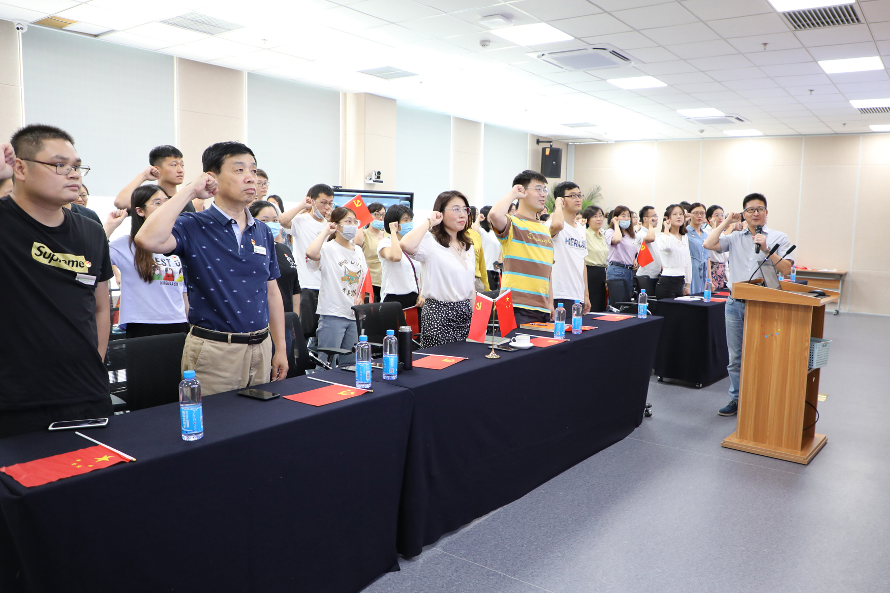 "I volunteer to join the Communist Party of China, support the party's program, abide by the party's constitution... I will fight for communism for life, be ready to sacrifice everything for the party and the people, and never betray the party." Under the leading of chairman Tao Xinhua, all Party members reviewed the oath of joining the party, remembered the oath to the party, deepened the awareness of Party members, and felt the responsibility, mission and glory of Party members.
